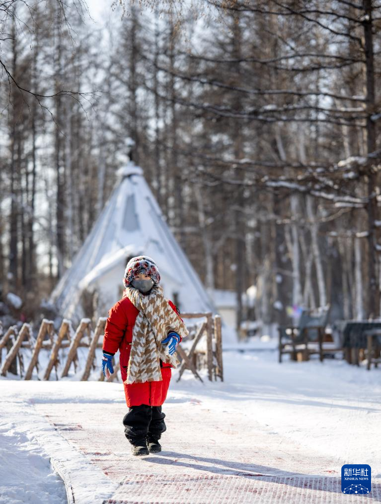 1月15日,一名小游客在根河市敖鲁古雅鄂温克民族乡游玩。新华社记者 连振 摄