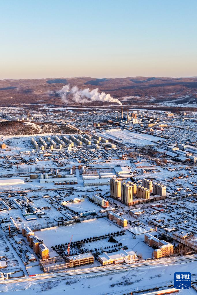 这是1月14日拍摄的根河市城区景色(无人机照片)。新华社记者 连振 摄